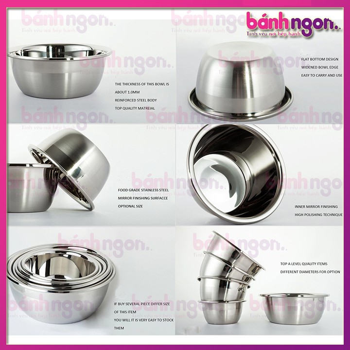 Âu trộn bột/bowl trộn bột/tô trộn bột inox thường được sử dụng luôn làm bát trộn salat hay bát đựng rau quả tươi trong nhà. Với thành bát dày dặn, làm từ inox nên bền, dễ lau rửa và an toàn khi tiếp xúc với thực phẩm. #Ủbột Đặc biệt #báttrộn có thể sử dụng trong lò vi sóng, trên bếp từ nhờ mặt đáy.
