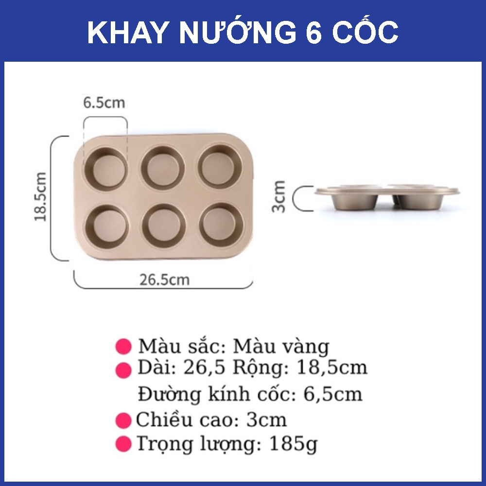 • + Khuôn làm bánh cupcake 6 ô: 26.5*18.5 - 200g