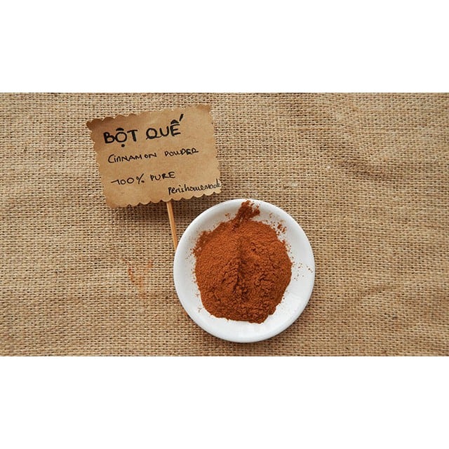 Bột quế có màu nâu, mịn có mùi nồng thơm hương đặc trưng giúp các món ăn của bạn thêm dậy mùi hơn bao giờ hết. Bạn có thể sử dụng bột quế làm gia vị ướp các loại thịt như: bò, dê, vịt, hải sản…