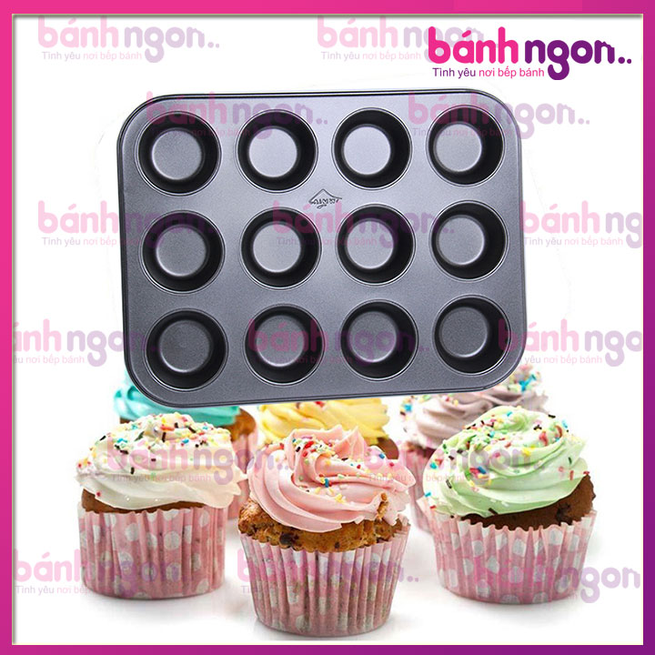 Khuôn nướng bánh cupcake chống dính 12 ô (Đen)