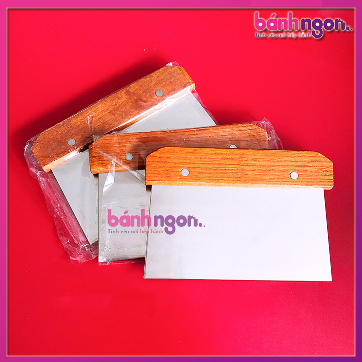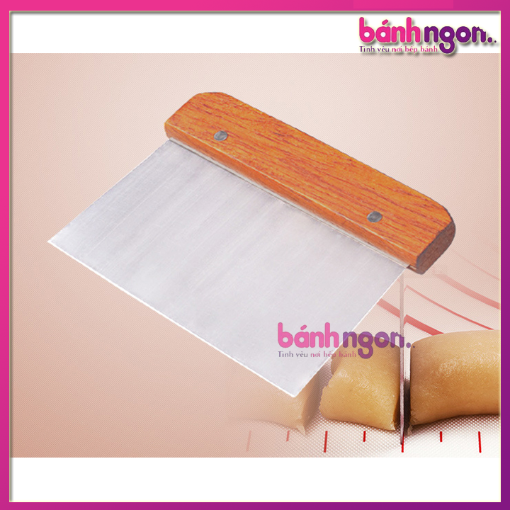 Dao cắt bột là dụng cụ không thể thiếu trong công cuộc bếp bánh. Dao gồm một đầu là lưỡi cán giúp cán nhỏ các lớp bột thành các phần đều nhau, một đầu là tay cầm bằng gỗ giúp bạn dễ cầm nắm.