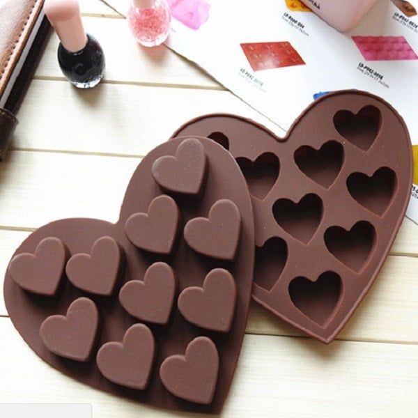 Khuôn Silicon Đổ socola hình tim 10 viên, dùng đổ socola, kẹo dẻo.