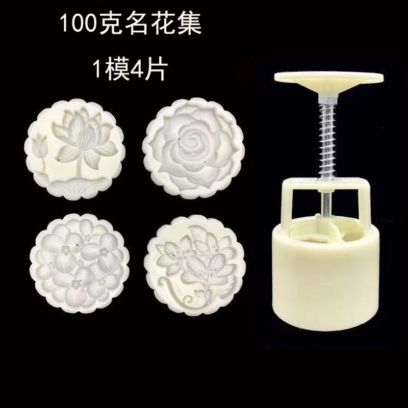 #50g #Mooncake #Mold #with #4pcs #Classic #Flower #Stamps #Hand #Press #Moon #Cake #Pastry #Mould #DIY