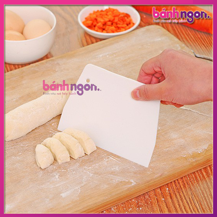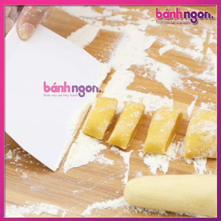 Trong làm bánh, công đoạn cắt bột, chia bột thành nhiều phần khác nhau để tiện cho việc làm bánh hoặc cán bột. Để làm được việc này, dân bánh hay dùng dụng cụ đó là miếng cắt bột để có thể chia bột một cách dễ dàng.