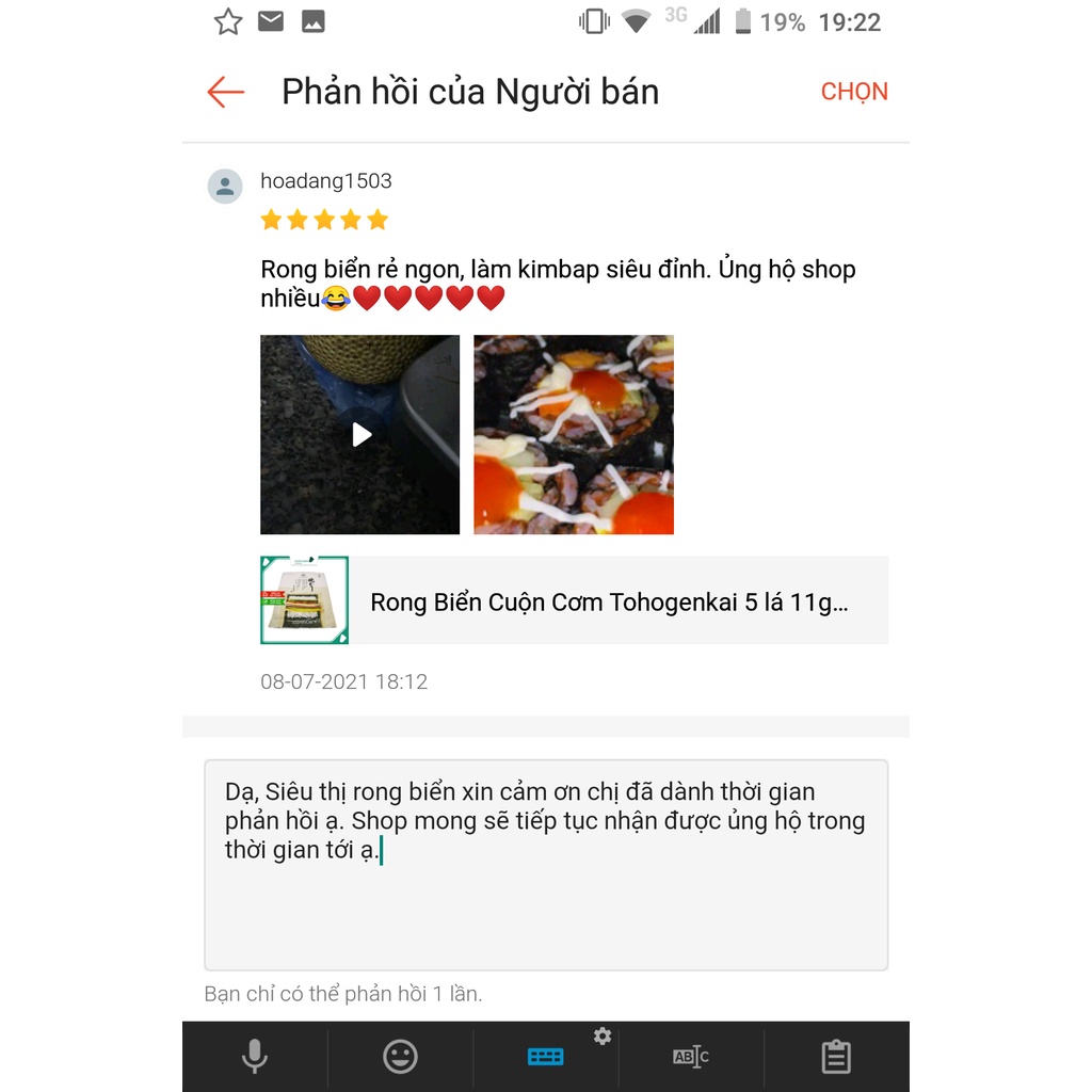 – Hướng dẫn sử dụng: Nguyên liệu ăn trực tiếp, cuộn cơm làm kimbap/ sushi hoặc chế biến thực phẩm. Nhiều nhà hàng, shop bán đồ ăn vặt online đã mua sản phẩm rong biển cuộn cơm của chúng tôi để sử dụng.